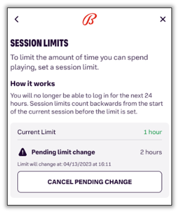 You can request to change your limit at any time. To ensure an enjoyable experience while promoting Responsible Gaming, applicable waiting periods apply for limit changes.